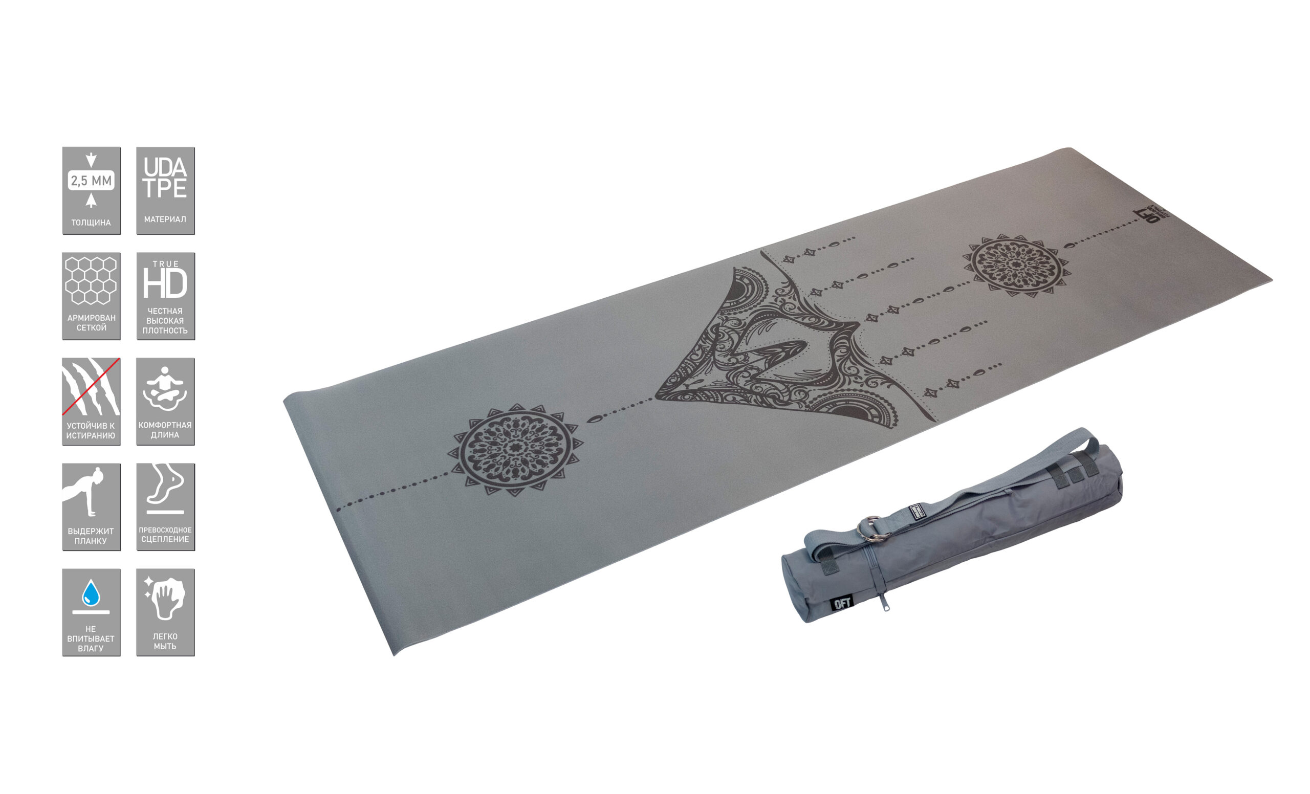 Коврик для йоги 2.5 мм серый в сумке с ремешком