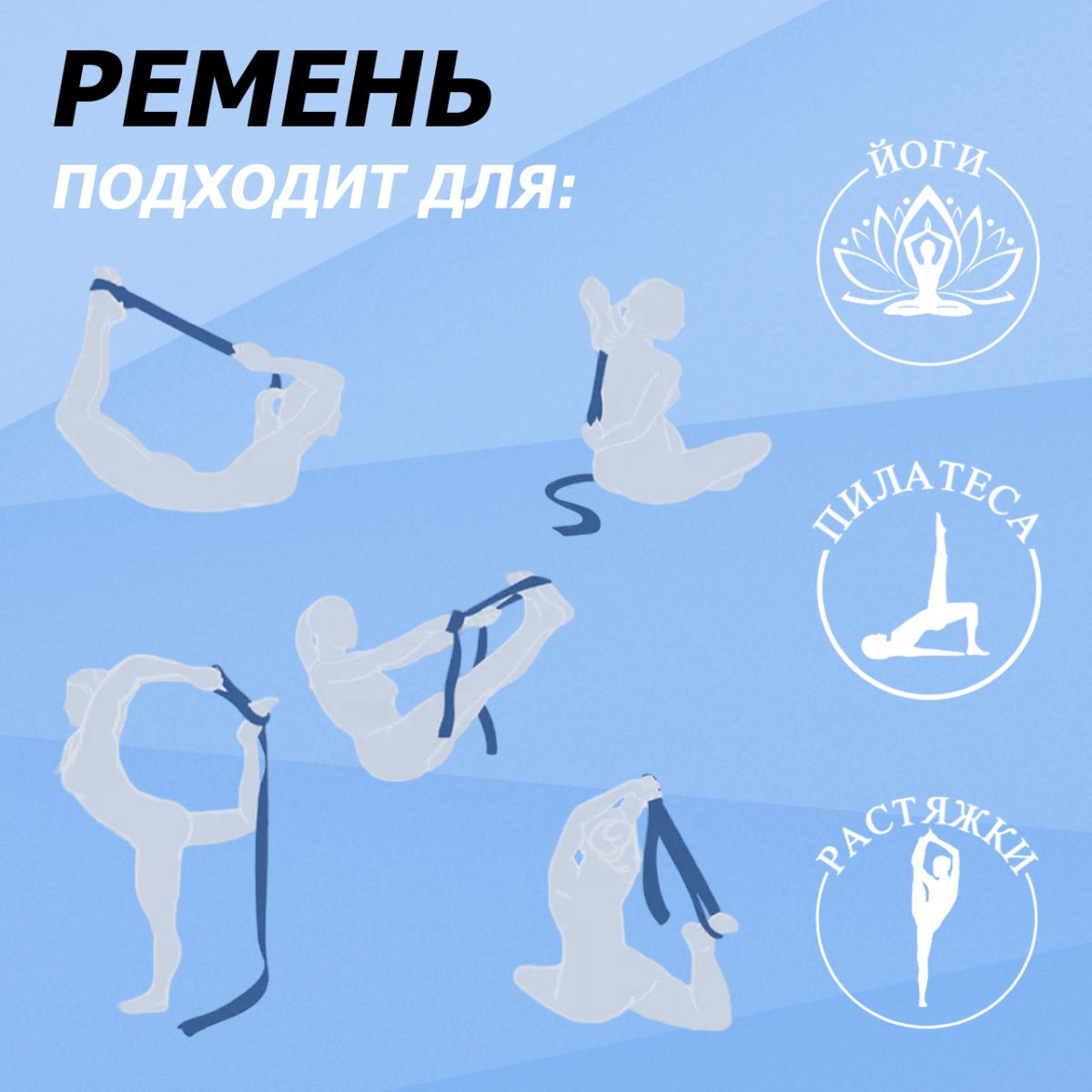 Ремень для йоги, синий 183х3.8 см