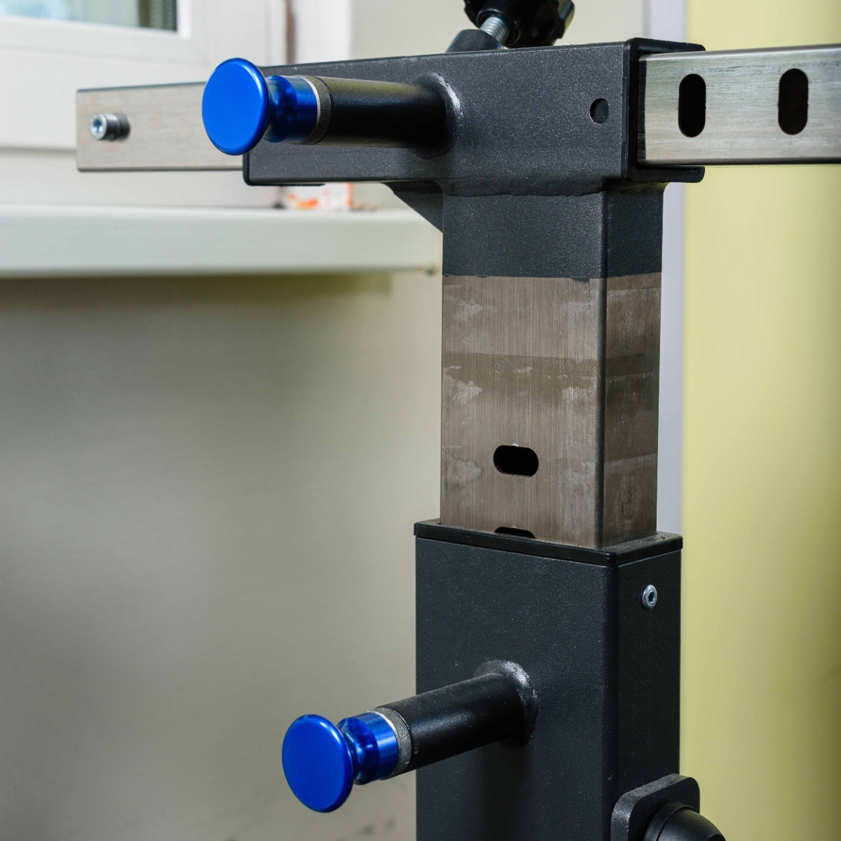 Основание выполнено из стального прямоугольного профиля 100×50 мм с толщиной стенки 3 мм. Дополнительные элементы изготовлены из листового материала толщиной 3-8 мм. Конструкция рамы отличается высокой жёсткостью и устойчивостью при работе с большими весами.