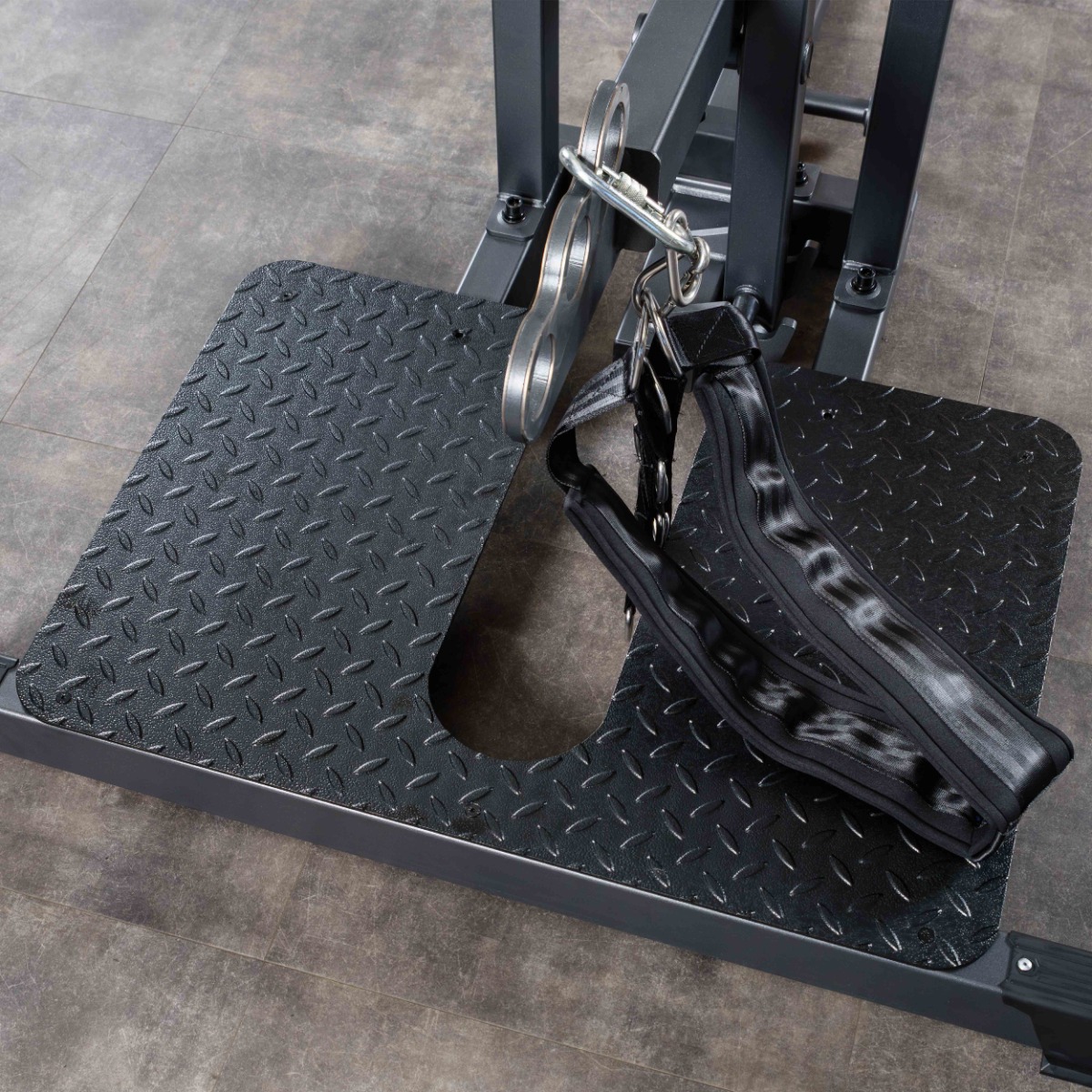 Профессиональный тренажер для коммерческого использования A607 Приседания с поясом предназначен для изолирующих упражнений на развитие больших и средних ягодичных мышц, квадрицепсов (прямых мышц бедра, гребенчатых и портняжных мышц), икроножных мышц.