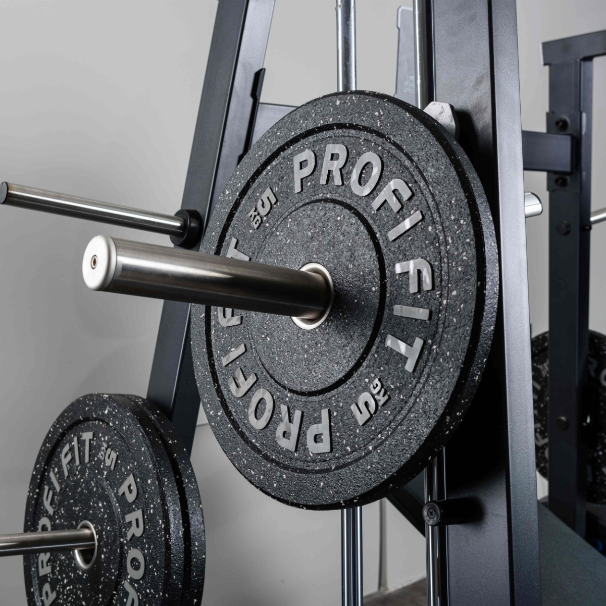 Накопители для хранения и работы со свободными весами оборудованы кольцами из плотной резины для предотвращения соприкосновения дисков с рамой тренажера.