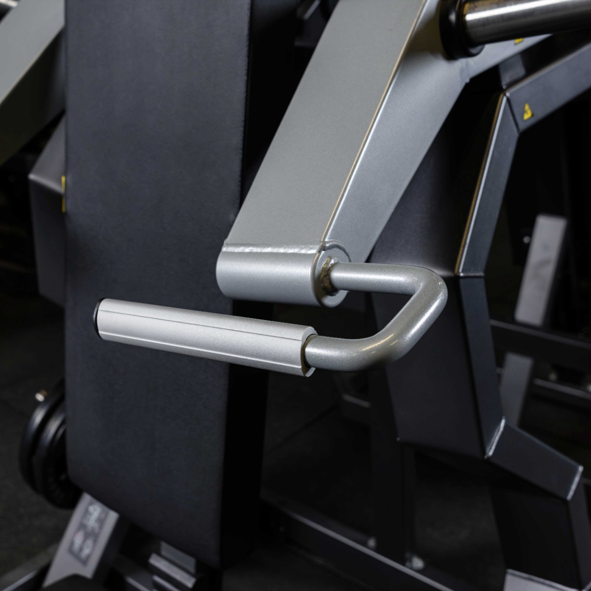 Накопители на подвижных рычагах и статичные для хранения оборудованы кольцами из плотной резины толщиной 20 мм для предотвращения соприкосновения дисков с рамой тренажера и амортизации при размещении свободных весов на накопителях.