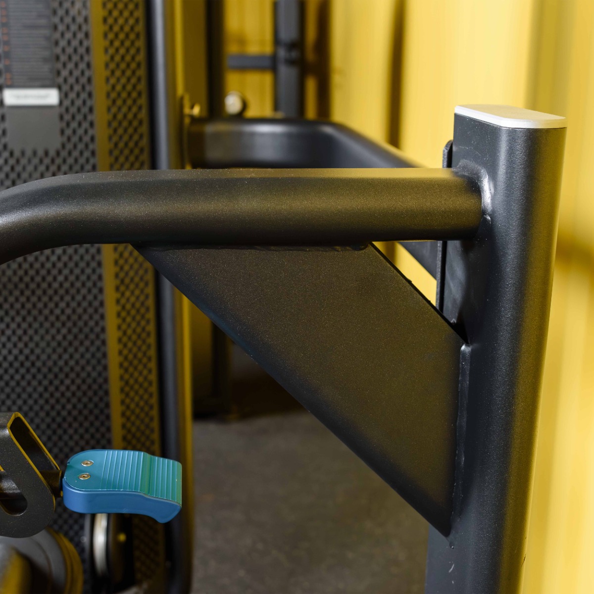 Прорезь в защитном кожухе грузоблока для доступа к регулировке нагрузки шлифованная с завальцованными внутрь гранями по всему периметру для безопасного доступа к весовому стеку и обеспечения дополнительной жёсткости рамы грузоблока.