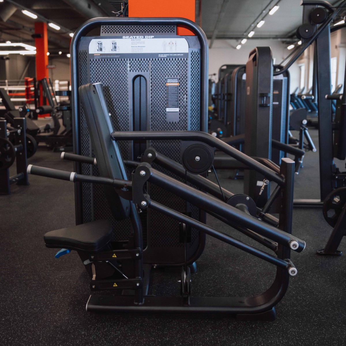 Профессиональный тренажер для коммерческого использования E7026 Трицепс-машина. Имитация отжиманий предназначен для изолирующего упражнения на трицепсы в положении сидя.