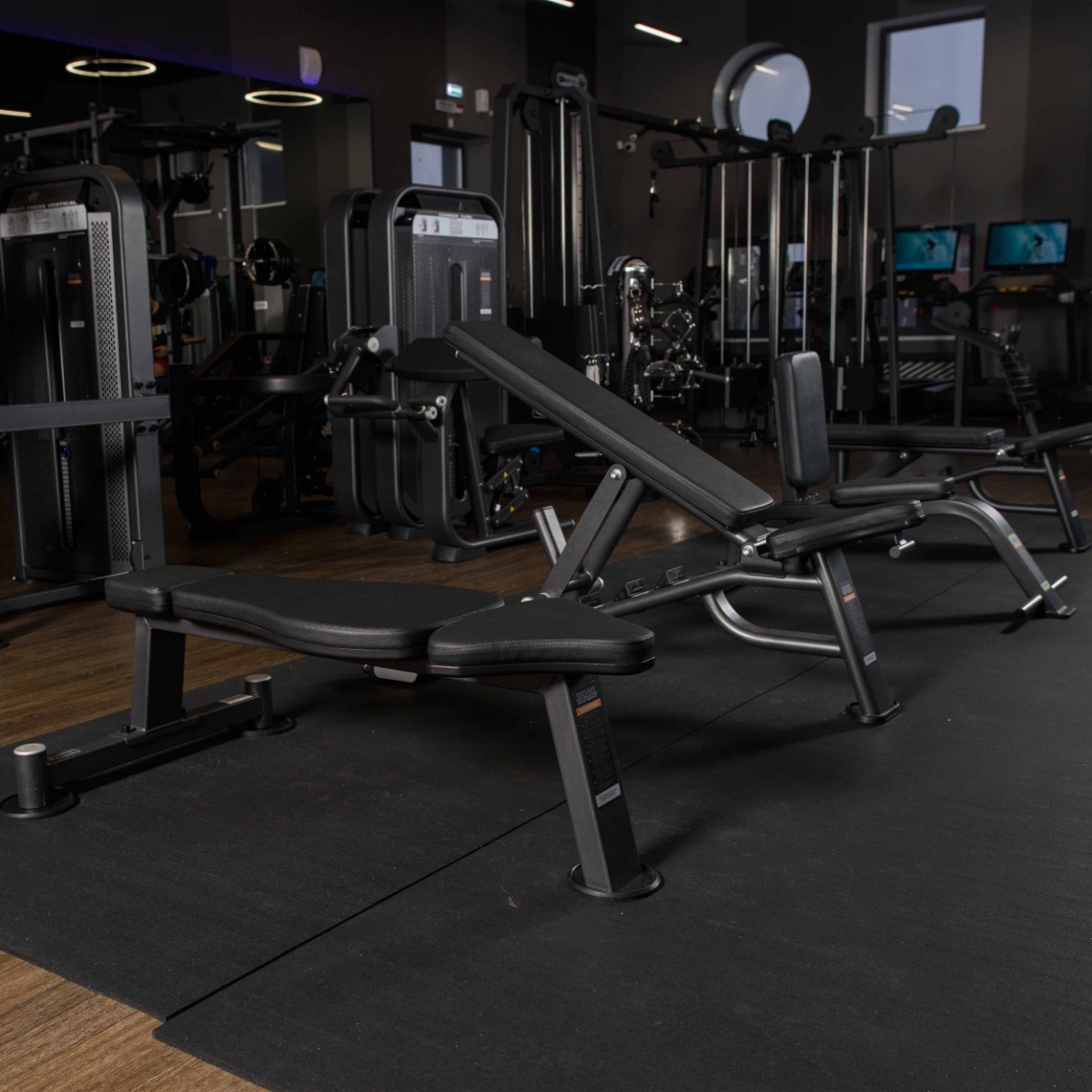 Профессиональный тренажер для коммерческого использования E7039 Скамья универсальная, мобильная предназначена для занятий со свободными весами – тренировки всех групп мышц.