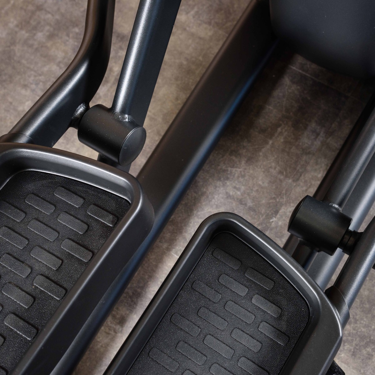 Широкие педали тренажера имею прорезиненное рифлёное амортизирующее покрытие для исключения соскальзывания стопы и надежной фиксации положения ног при выполнении упражнения.