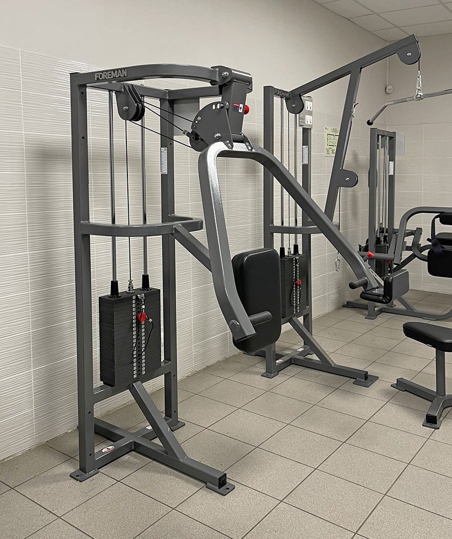Тренажер предназначен для выполнения двух упражнений по тренировке следующих мышц: дельта, трицепс, трапециевидная, бицепс, широчайшая спины, большая грудная, передние дельты.