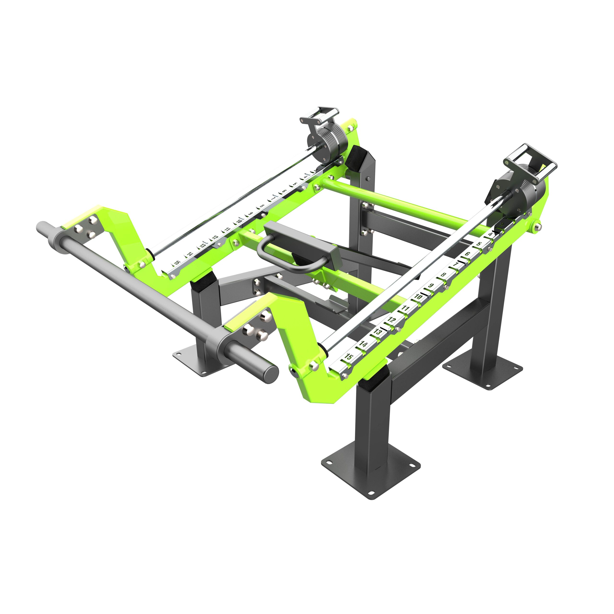 При изготовлении деталей используются высокоточные станки лазерной резки, что обеспечивает точность линейных размеров, корректное позиционирование элементов в сборочных узлах и стабильность геометрии конструкции тренажёра.