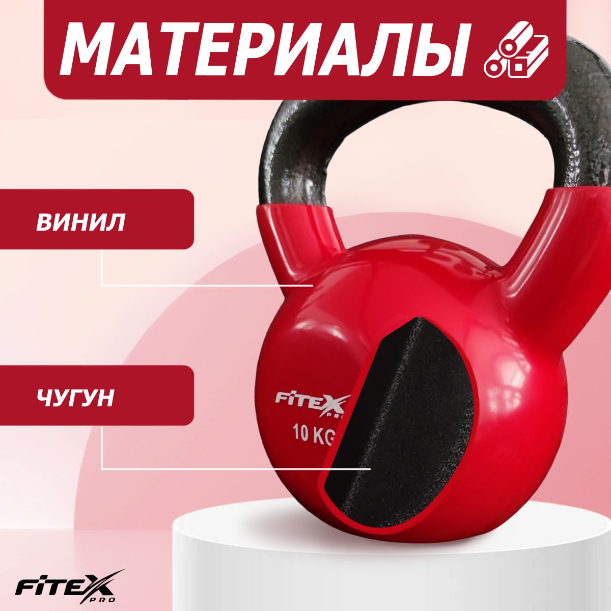 Гиря FITEX PRO сделана из чугуна и имеет плотное виниловое покрытие, которое не окрашивает стены и пол, снизит шум и убережет кожу рук от раздражения.