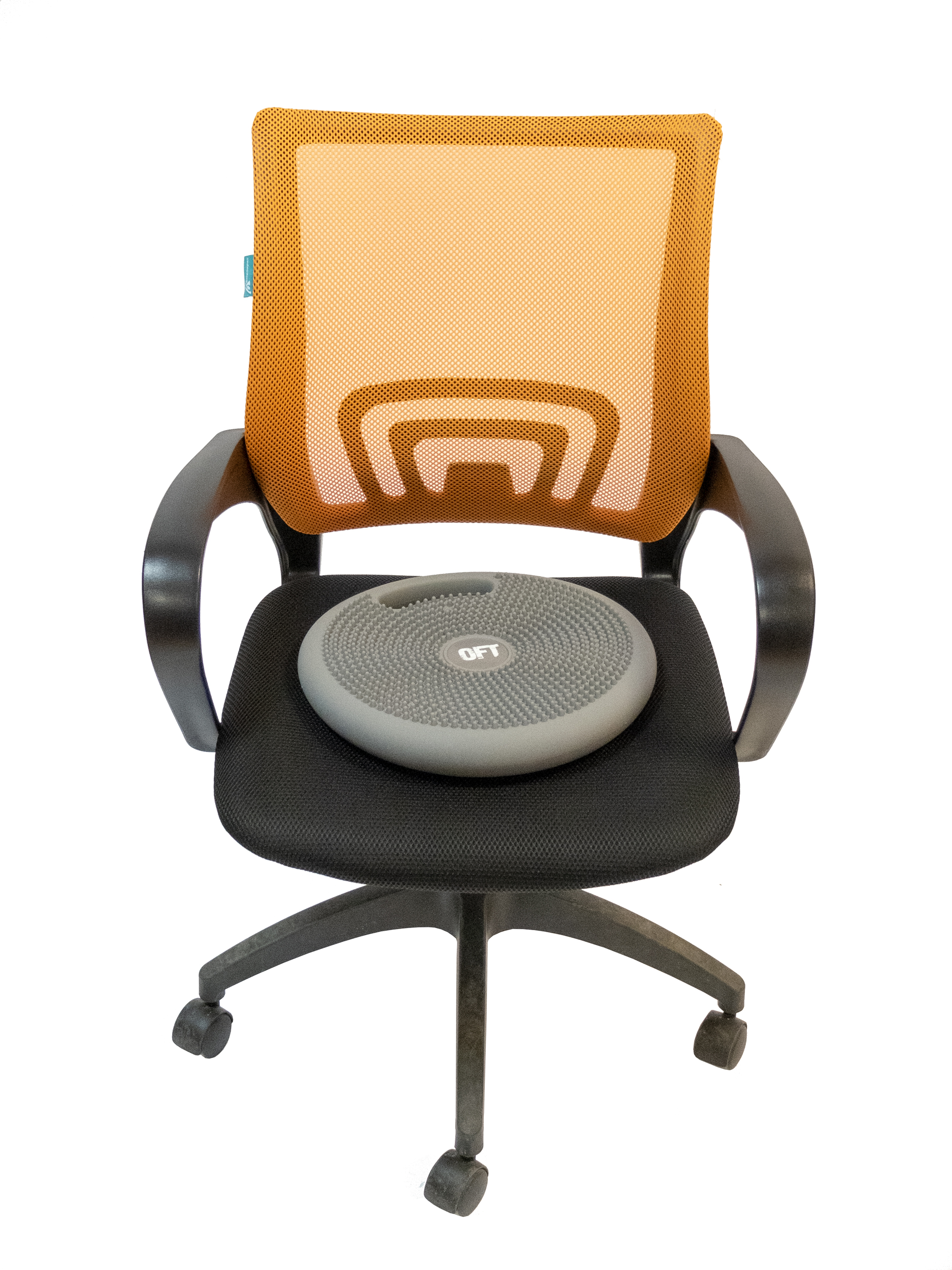 - Балансировочная подушка OFT помогает держать позвоночник прямо, снижает нагрузку на спину и предотвращает развитие дискомфорта при длительной сидячей работе.