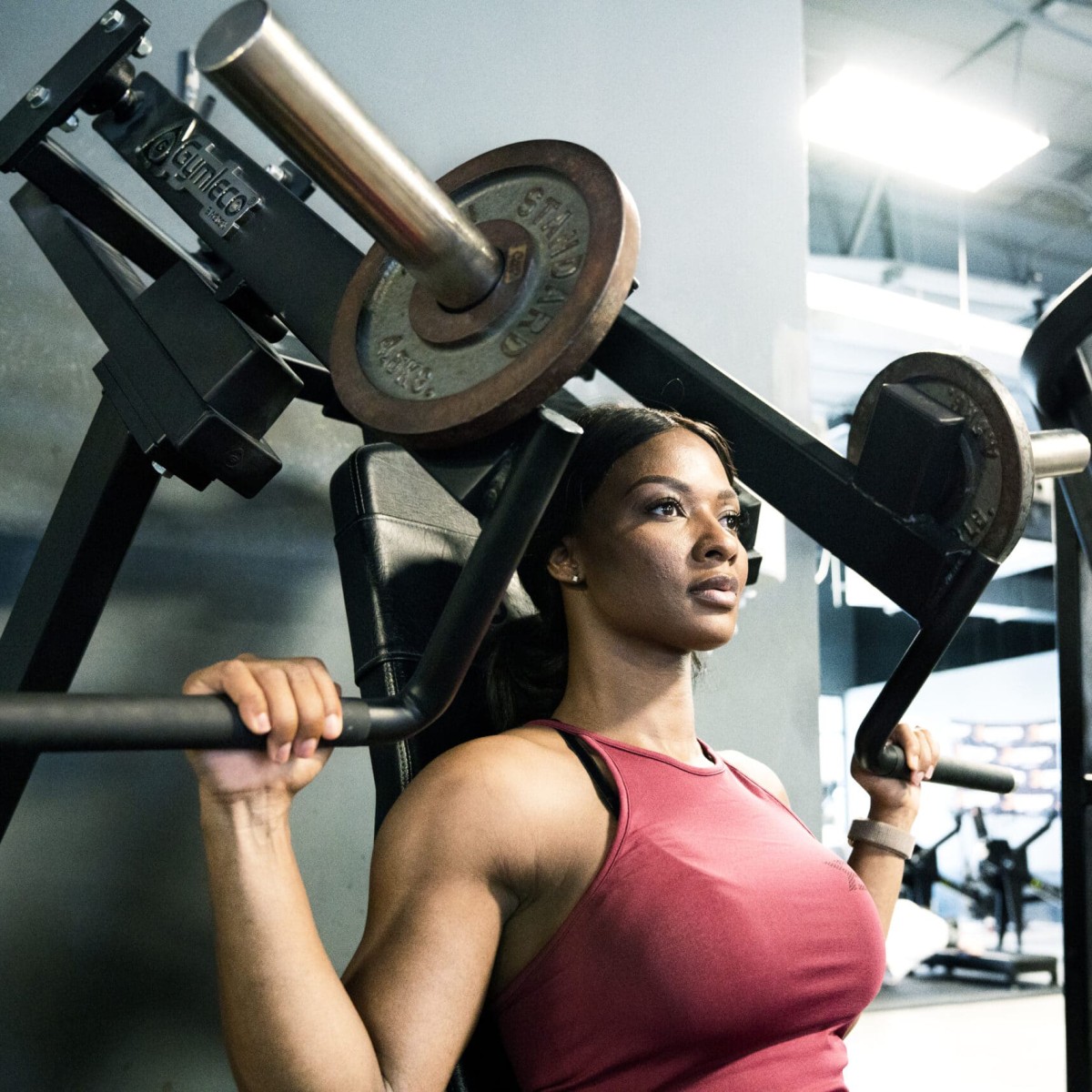 Наклонный грудной жим сидя на свободных весах Gymleco 020