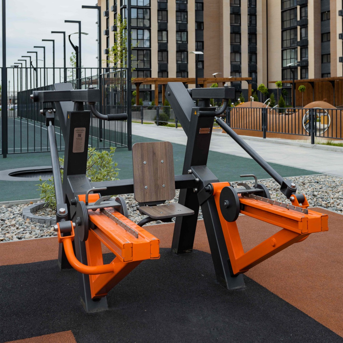 Спинка и сиденье тренажера выполнена из высокопрочного ударостойкого HPL-пластика толщиной 12 мм.