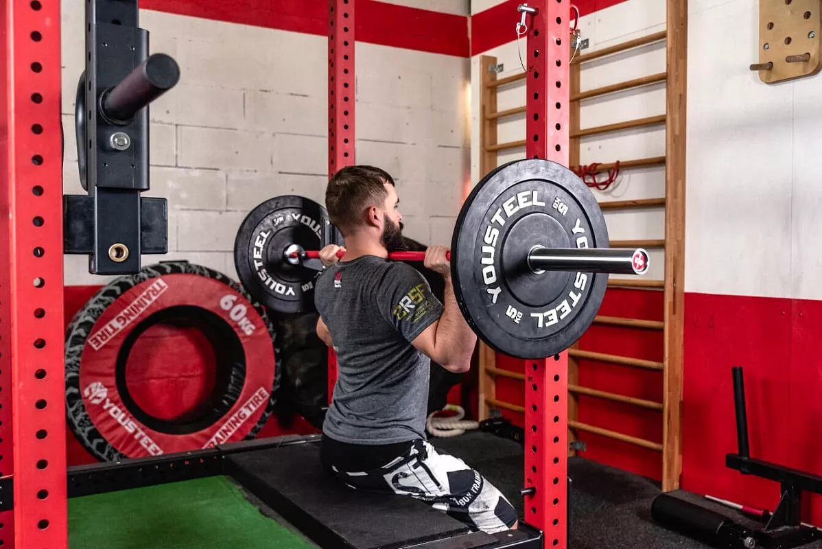 Скамья на страховочные упоры с фиксаторами — это навесной элемент на наши страховочные упоры внутреннего и наружного исполнения. Скамья служит стабильной платформой для выполнения приседаний, прыжков, тяг лежа, зашагиваний с отягощениями и многого другого. В отличии от тумб для запрыгивания или скамьи для жима вы может легко регулировать высоту установки данной скамьи с шагом 50мм, для этого достаточно изменить высоту установки страховочных упоров.
