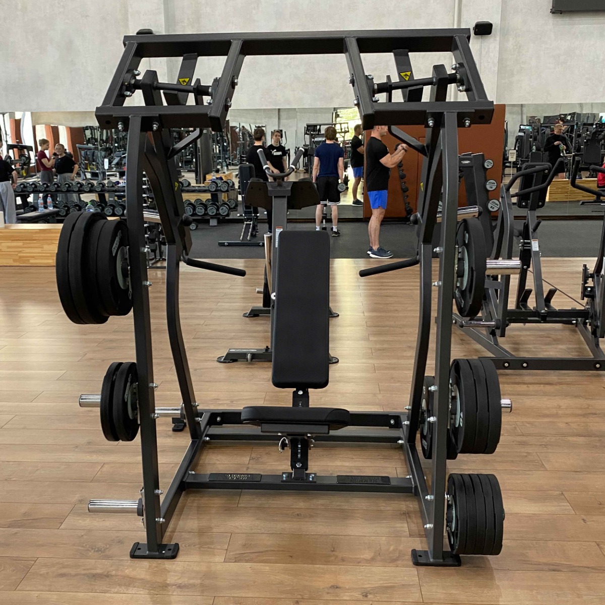 Количество хромированных накопителей для хранения свободных весов: восемь накопителей из толстостенной стальной трубы диаметром 48 мм. Максимальный вес на накопитель: 100 кг.
