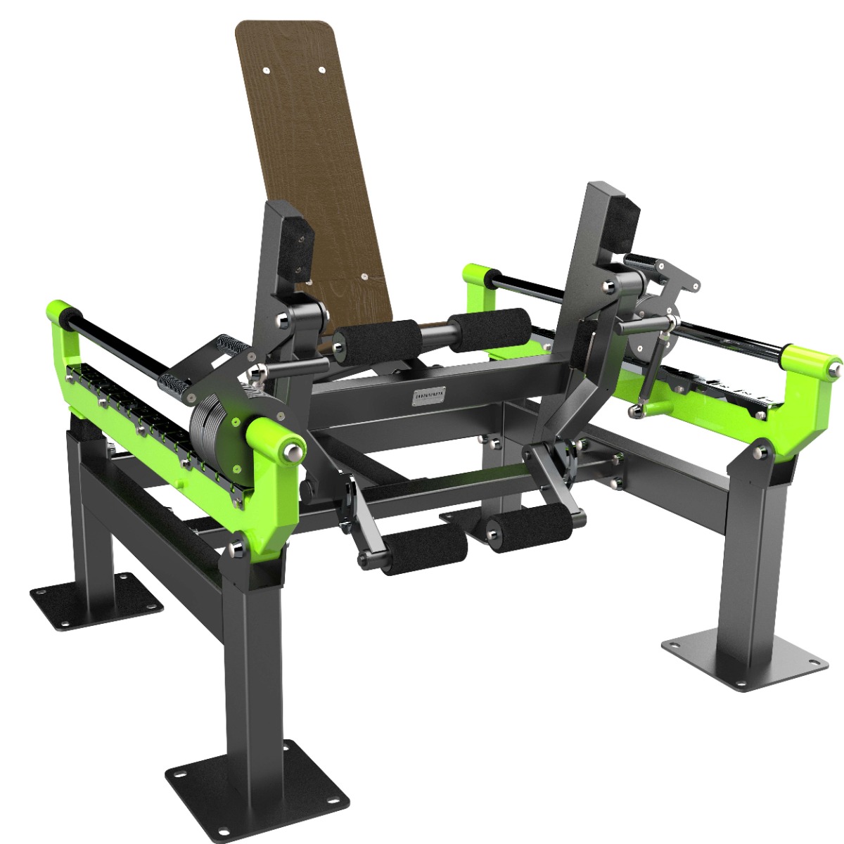 Механизм ограничения амплитуды движения с фиксированным углом хода предотвращает чрезмерное отклонение рабочих рычагов, исключая возможность травмирования пользователя и снижая ударные нагрузки на конструкцию. Дополнительно выполняет функцию антивандальной защиты, исключая контакт подвижных элементов между собой.