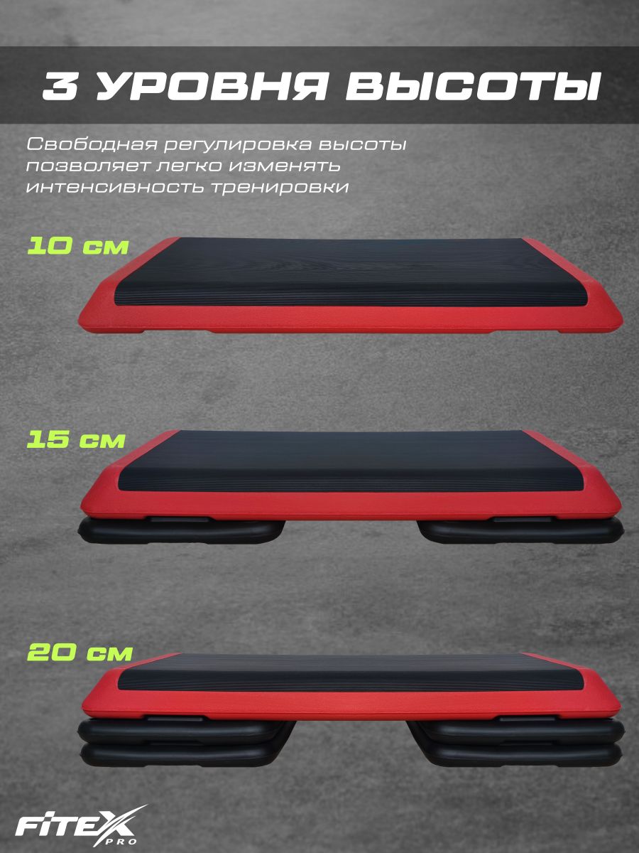 Трехуровневая степ-платформа от Fitex Pro – многофункциональный спортивный инвентарь, необходимый каждому клубу для групповых программ и самостоятельных тренировок всего тела. За счет высокоинтенсивной тренировки на степе можно наладить работу сердечно-сосудистой системы.