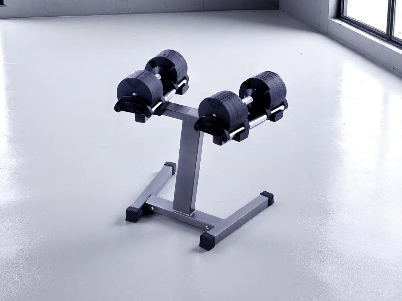 Стойка для регулируемых гантелей позволяет не только компактно хранить гантели, но и удобно менять их вес во время занятий.