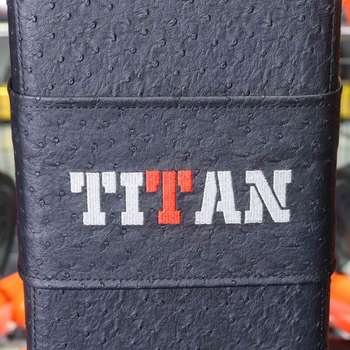 Эргономичное сиденье и спинка с раздельными подушками (для поддержки поясничного отдела) выполнены из вспененного полиуретана, обладающего оптимальной жёсткостью, устойчивостью к деформации и способностью сохранять форму при длительной нагрузке. Обивка выполнена из премиальной искусственной кожи с перфорацией и дополнительным декоративным элементом с вышивкой «TITAN».