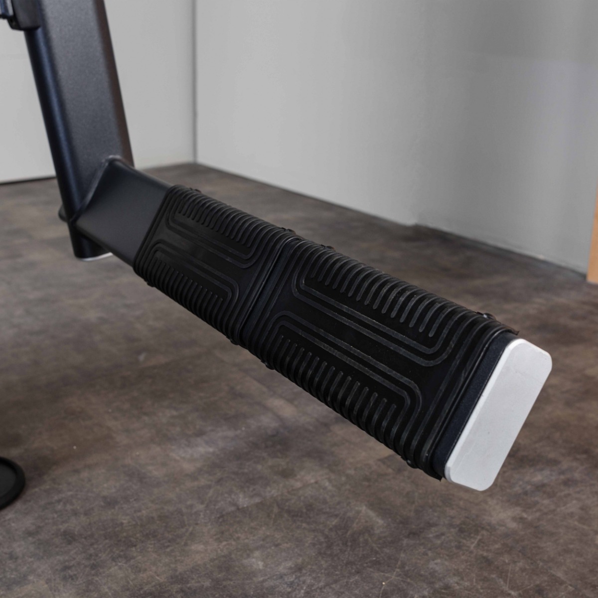 Рычаг для ног, оборудованный нескользящими резиновыми вставками с рифленой поверхностью для устойчивого положения, движется по нелинейной траектории, тем самым обеспечивает концентрацию на целевых мышцах.
