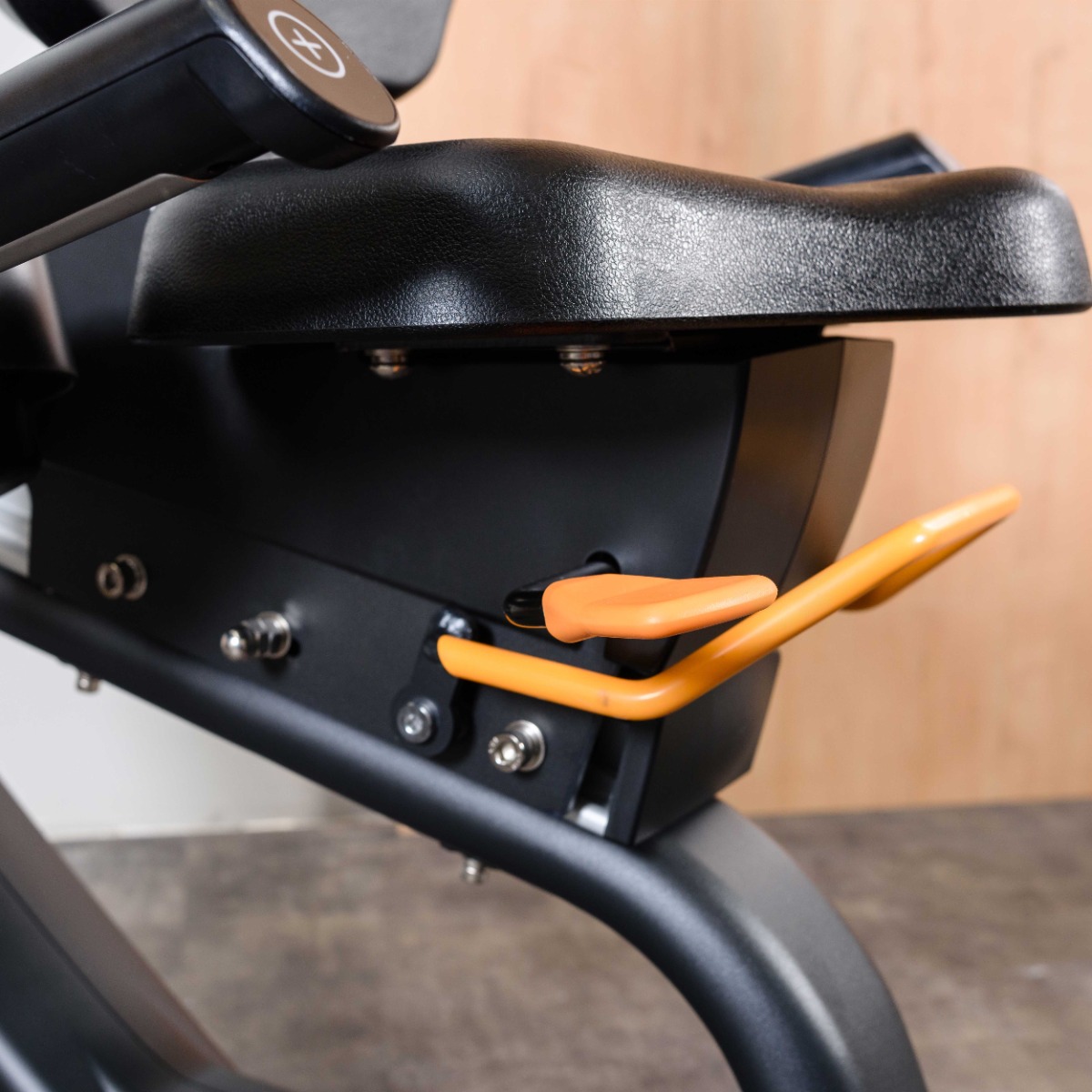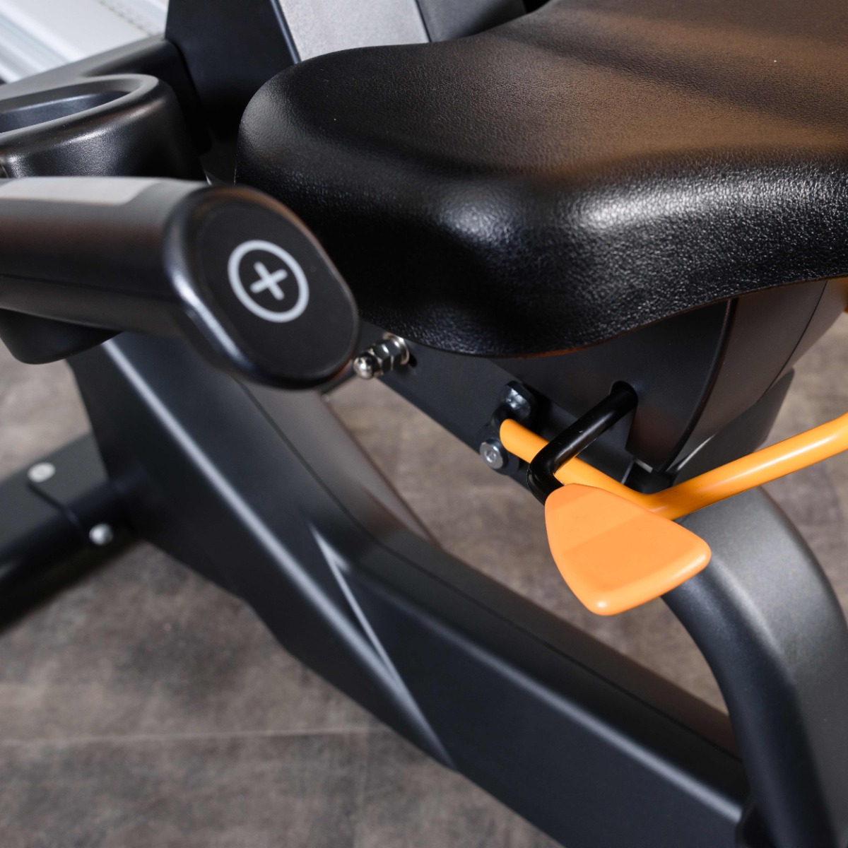 Рукоятки расположены вдоль сиденья, оснащены парой датчиков пульса и клавишами регулировки нагрузки на торцах.