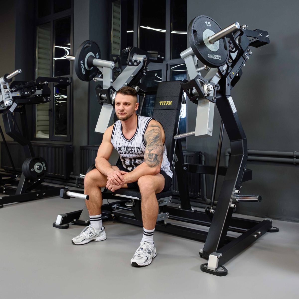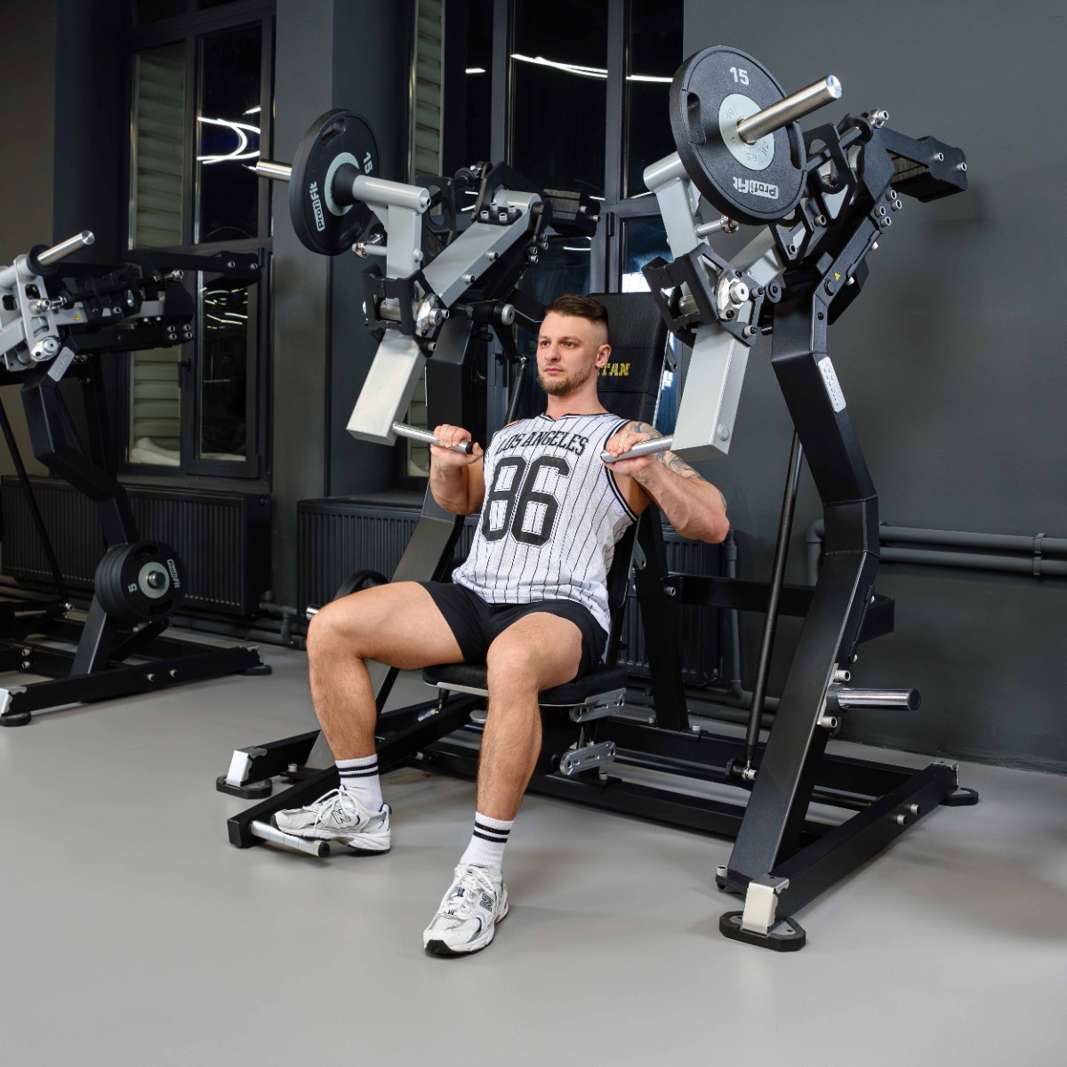 Профессиональный тренажер для коммерческого использования Y915ZAM Наклонный жим от груди предназначен для тренировки больших грудных и дельтовидных мышц и трицепсов.